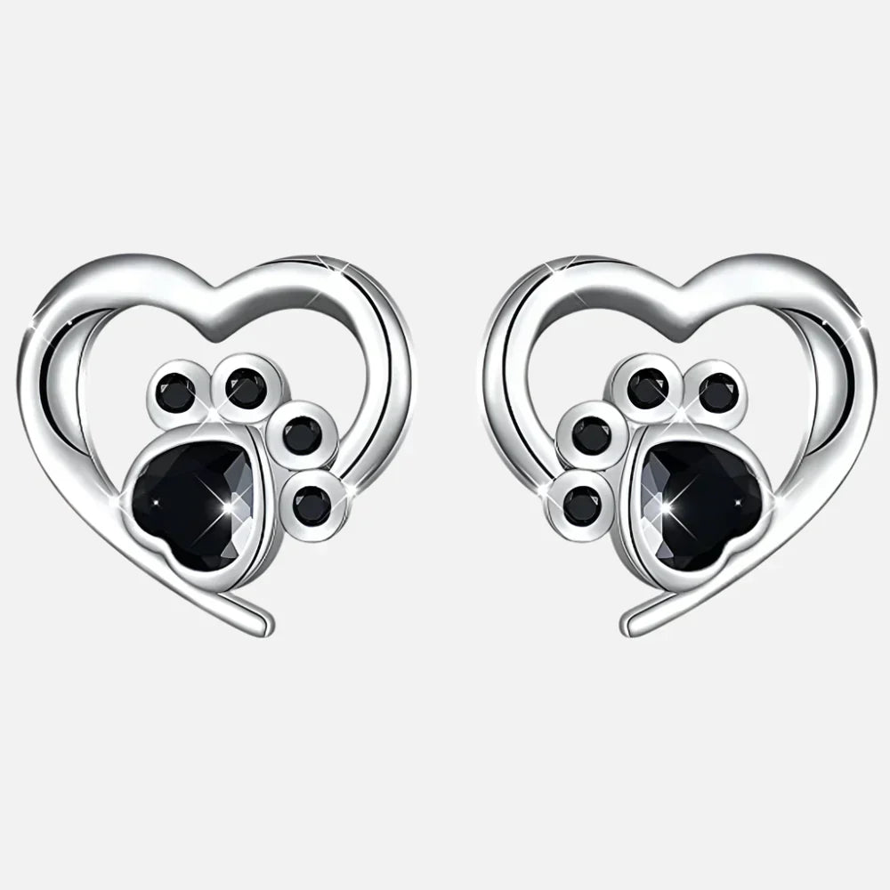 NORA – Elegante Herz-Pfote-Ohrstecker mit funkelndem schwarzem Kristall für stilvolle Akzente