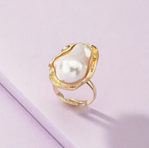 Vintage verstellbarer Perlenring mit unregelmäßiger Perle